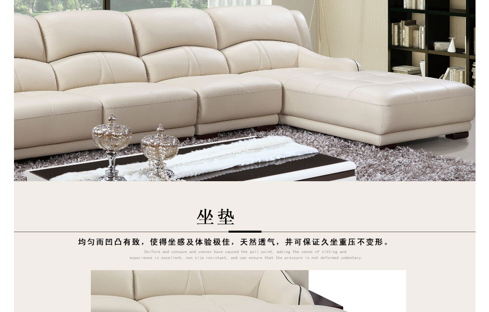 沙发的做工很精细,色泽亮丽,尺寸标注,和图片基本一样,皮质也不错,家人都很满意,好评。