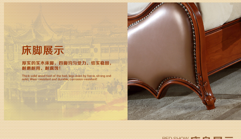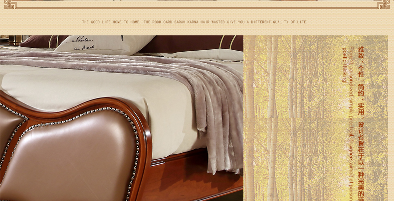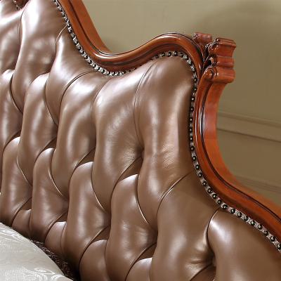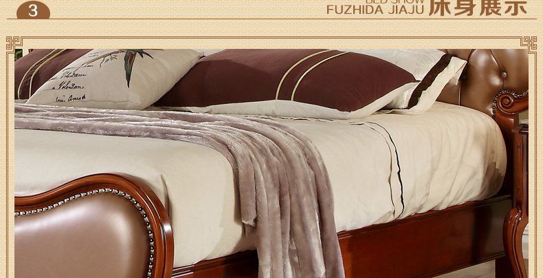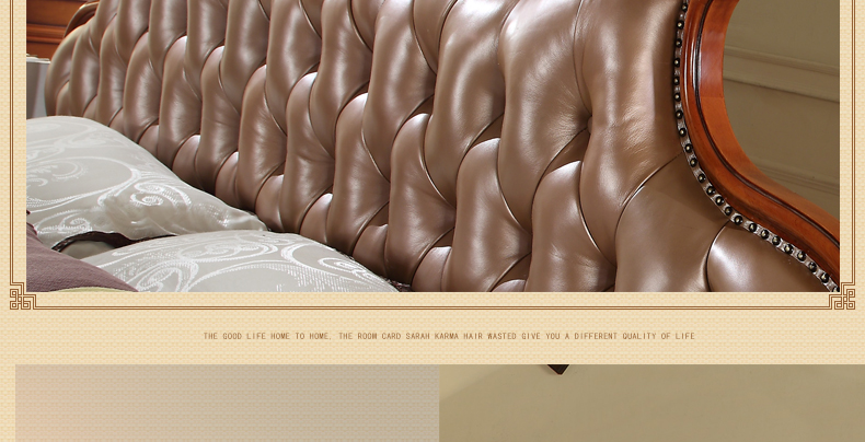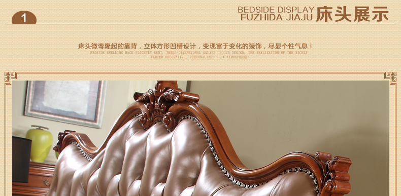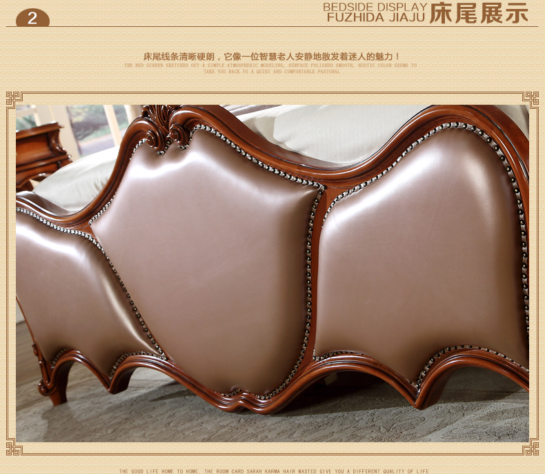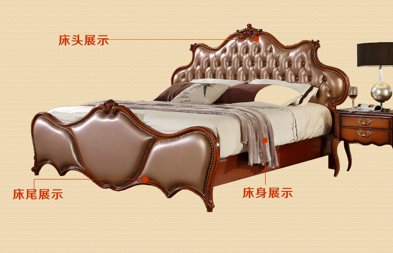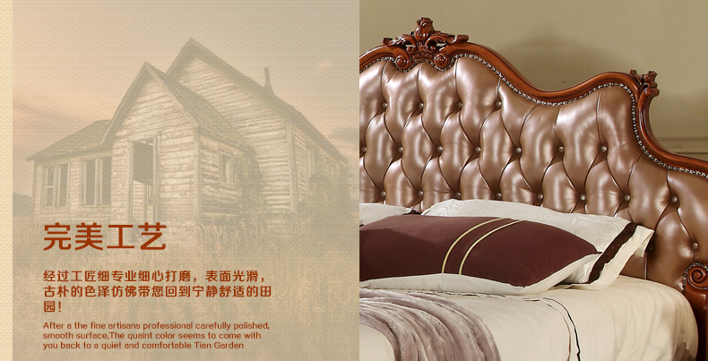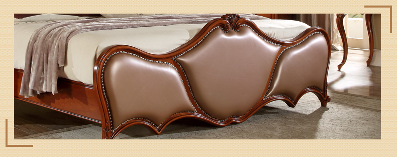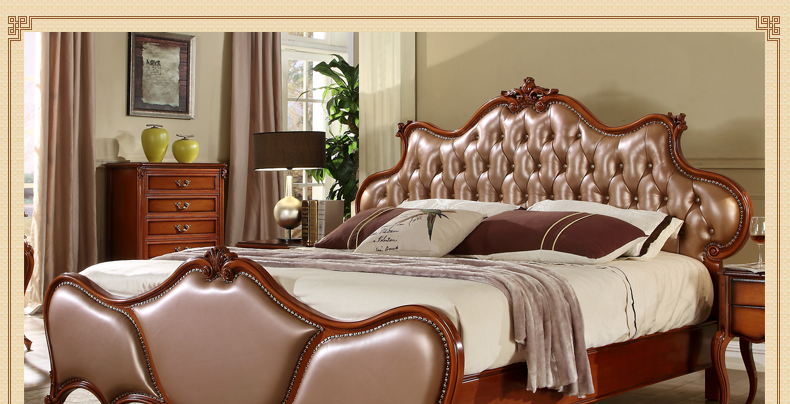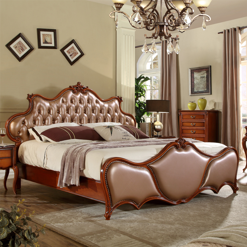 法诗娜客厅卧室家具美式双人床 真皮雕花舒适大床1.8米8A02