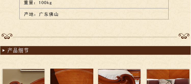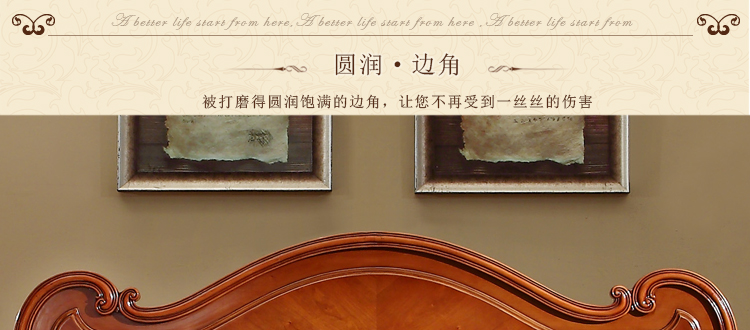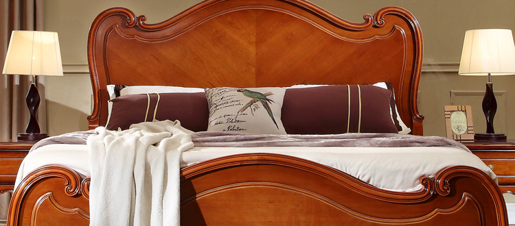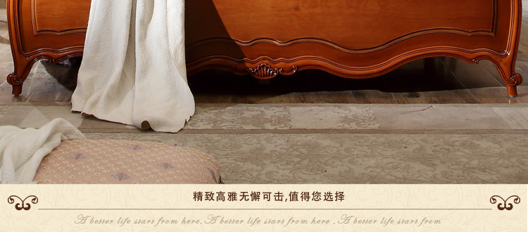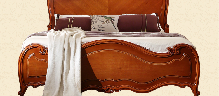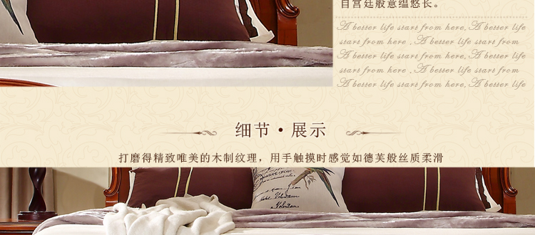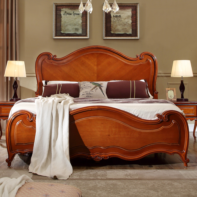 法诗娜美式乡村家具卧室简美式床橡胶木床双人床舒适大床8A05