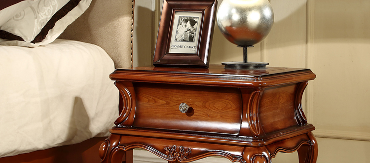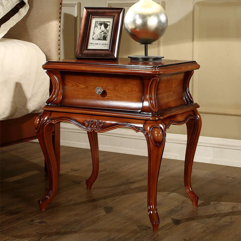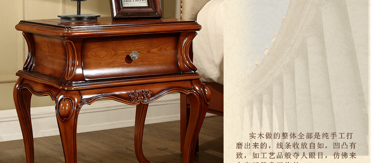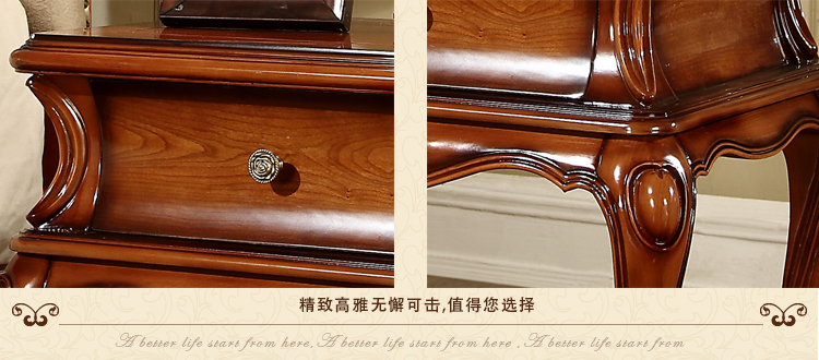 法诗娜美式家具美式床头柜橡胶木床头柜储物柜简约床边柜8E01