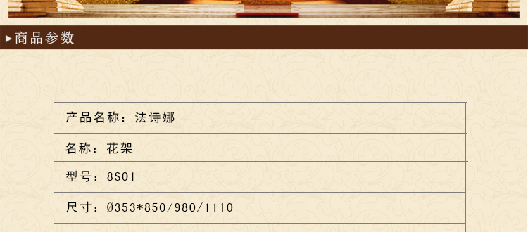 外围尺寸:8S01花架低:Ø353*850mm、 8S01花架中:Ø353*980mm、 8S01花架高:Ø353*1110mm。