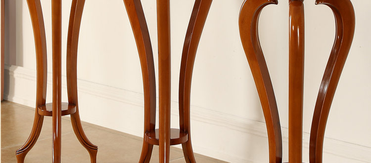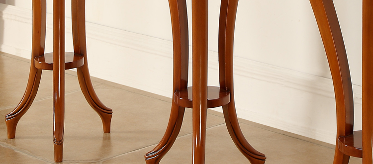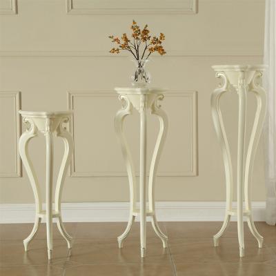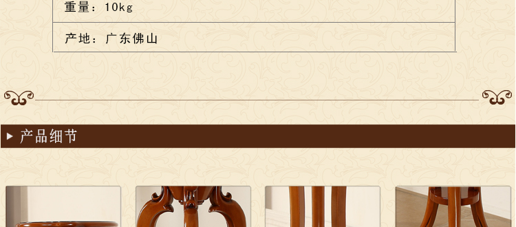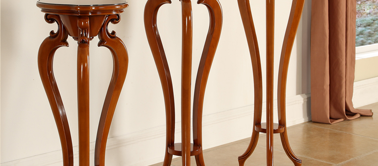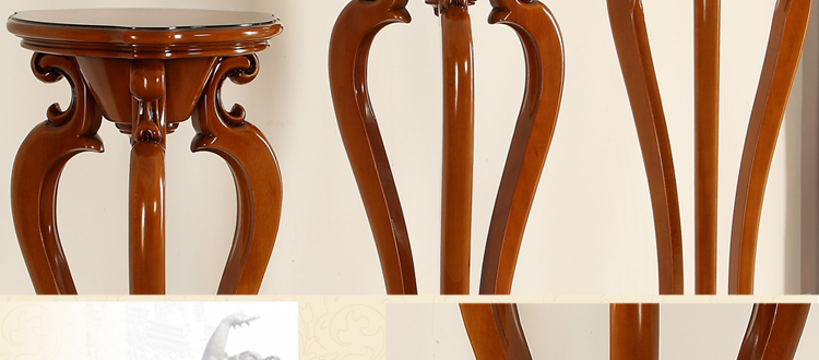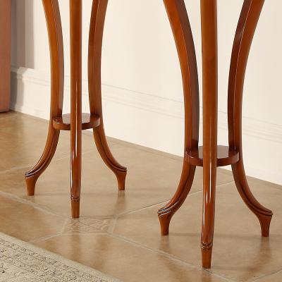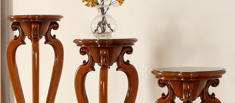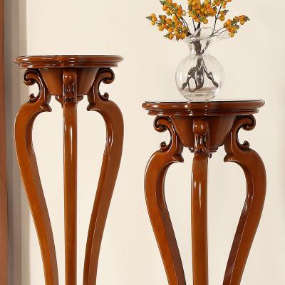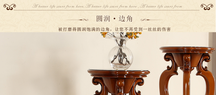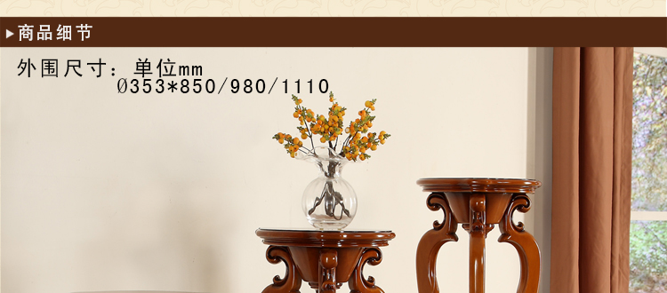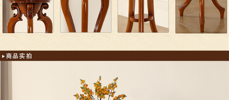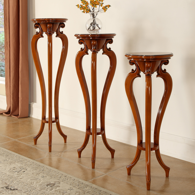 法诗娜美式花架圆形橡胶木小花几客厅装饰花盆架置物架8S01