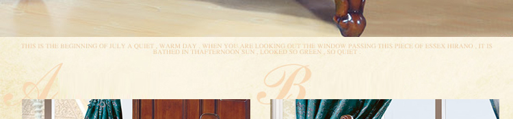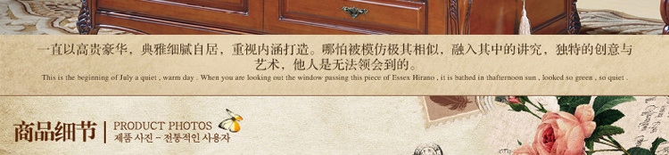 采用美国认证高标准原木为主材;经济实惠又环保。国内知名设计师独家设计;中西方文化合并的极致之做;具有中式的节约;同时也不失西式的华贵优雅;十分庄重。一流的工艺水准,坚实稳固,经典隽永;线条流畅,曲致玲珑;衬托家中风格韵味!