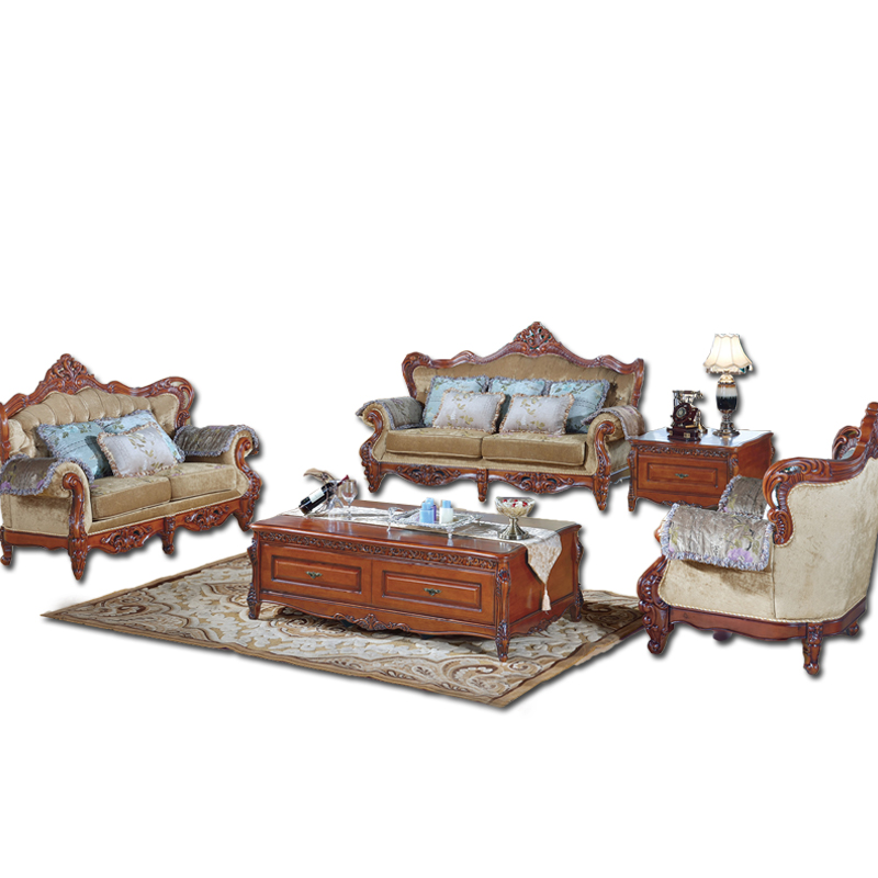 金亿宝实木雕花新美式风格布艺沙发1+2+3U型沙发组合916布艺
