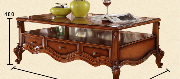 法诗娜美式茶几客厅简约茶桌几橡胶木茶几小户型复古8W03