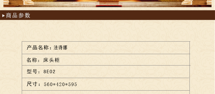 法诗娜美式橡胶木床头柜 简约大容量储物床头柜 卧室床边柜8E02