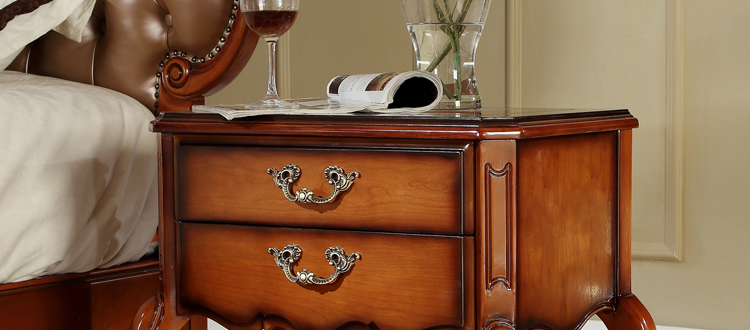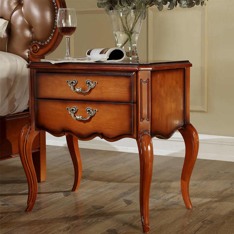 法诗娜卧室橡胶木美式床头柜美储物柜仿古收纳床头柜8E05