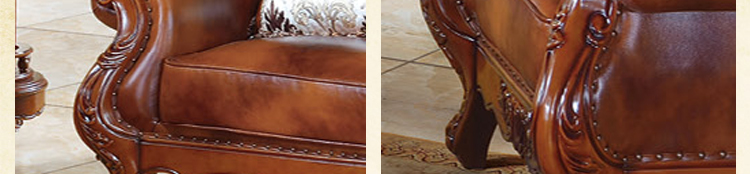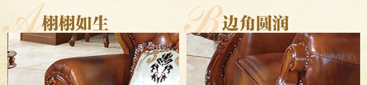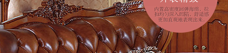 金亿宝实木真皮沙发美式古典雕花舒适大气客厅U型沙发组合918皮艺