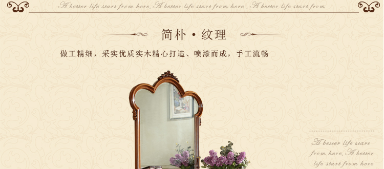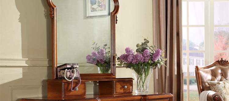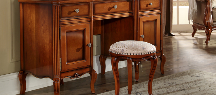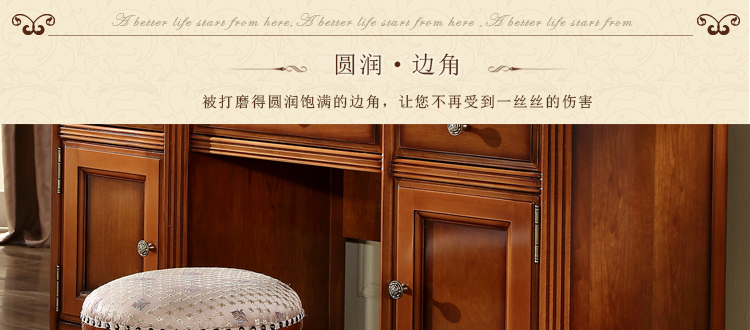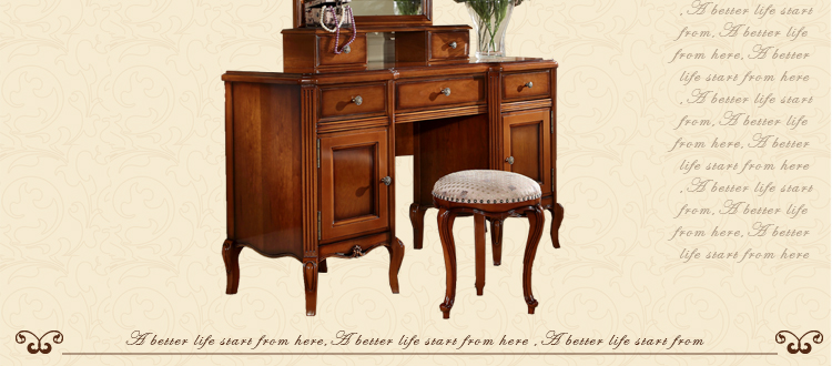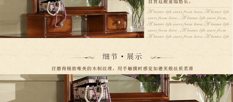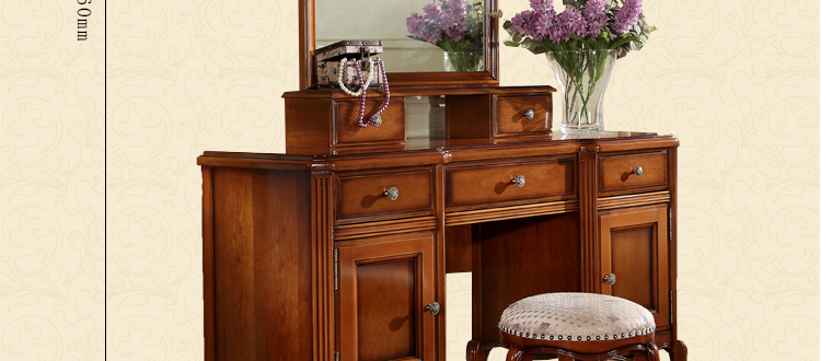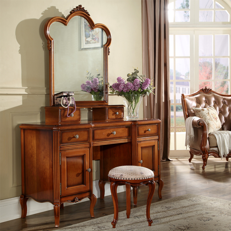法诗娜美式橡胶木梳妆台组合卧室家具化妆台小户型化妆桌8C01