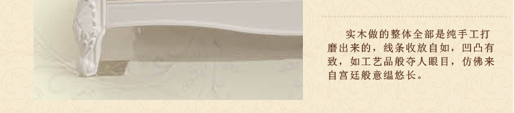 欧式风格家具特点讲究手工精细的裁切雕刻,轮廓和转折部分由对称而富有节奏感的曲线或曲面构成,结构简练,线条流畅,色彩富丽,艺术感强,给人的整体感觉是华贵优雅,十分庄重。