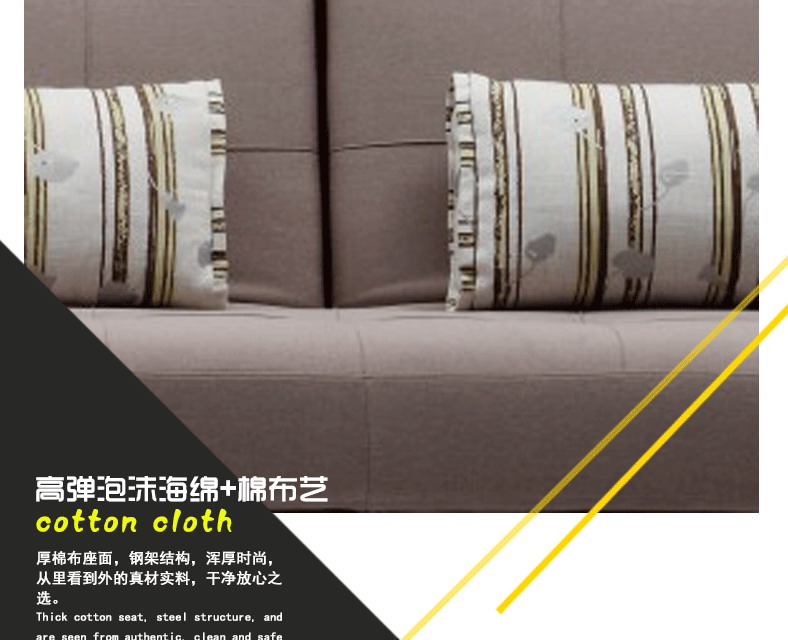 厚棉布座面,浑厚时尚,从里看到外真材实料,干净放心之选。简约沙发呈现了不同风格,优质自然绒和棉麻布料双重面料结合,更加持久和耐用,棉麻布艺防止生活静电、耐脏、绵软舒适,四季适用。