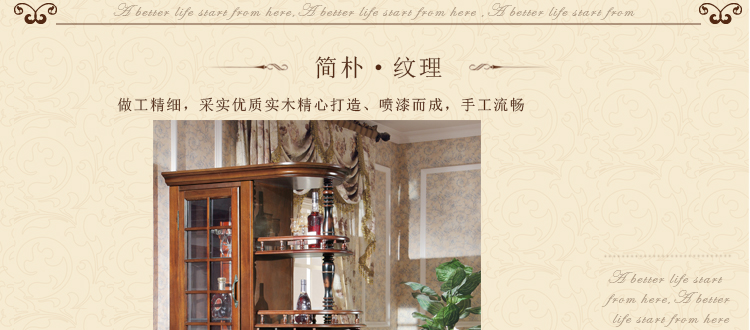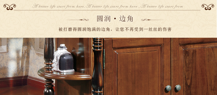 美式实木家具以原始、自然、纯朴的色彩,给人一种贵而不露的感觉作旧,这就和美利坚民族本身民族自豪感造就而成的!所以无论是美式古典家具还是美式田园家具都有一种雍容的华丽。