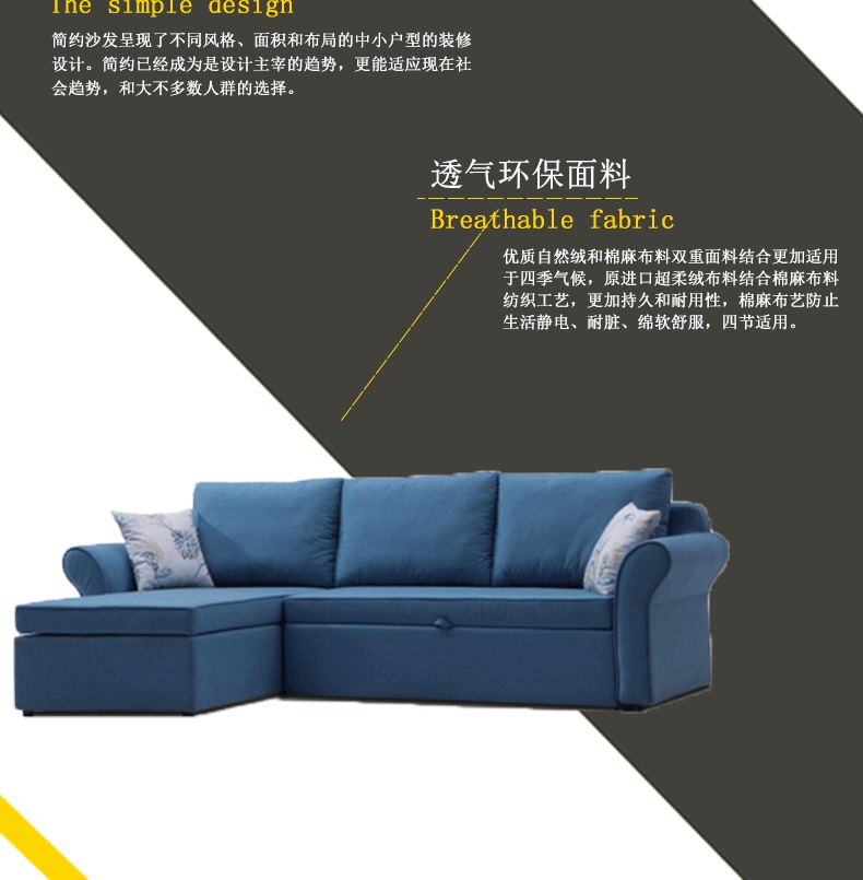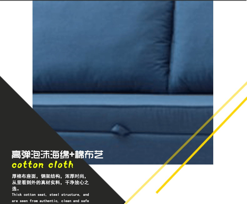 厚棉布座面,浑厚时尚,从里看到外真材实料,干净放心之选。简约沙发呈现了不同风格,优质自然绒和棉麻布料双重面料结合,更加持久和耐用,棉麻布艺防止生活静电、耐脏、绵软舒适,四季适用。