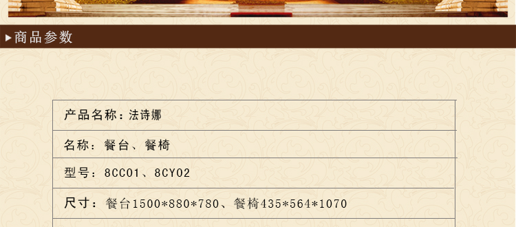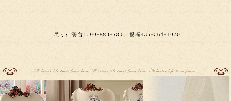 外围尺寸:餐台:1500*880*780mm; 餐椅:435*564*1070mm