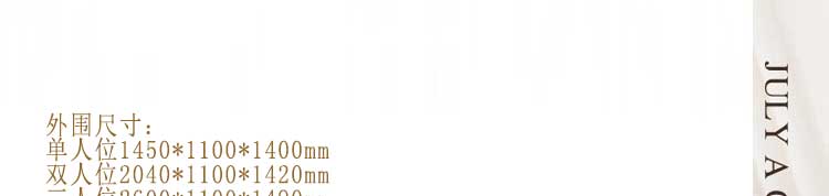 外围尺寸:单人位1450*1100*1400mm; 双人位2040*1100*1420mm; 三人位2600*1100*1490mm。