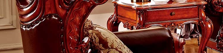 古典法式家具带有浓郁的贵族气息,这类风格的家具,主要采用花样繁多的装饰,作大面积的手工雕刻、金箔贴面、描金涂漆处理,坐卧类家具大量应用面料包覆,华丽的布面与精致的雕刻互相配合。新古典的线条更为明快,主要以嵌花贴皮呈现质感。