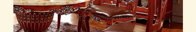 古典法式家具带有浓郁的贵族气息,这类风格的家具,主要采用花样繁多的装饰,作大面积的手工雕刻、金箔贴面、描金涂漆处理,坐卧类家具大量应用面料包覆,华丽的布面与精致的雕刻互相配合。新古典的线条更为明快,主要以嵌花贴皮呈现质感。