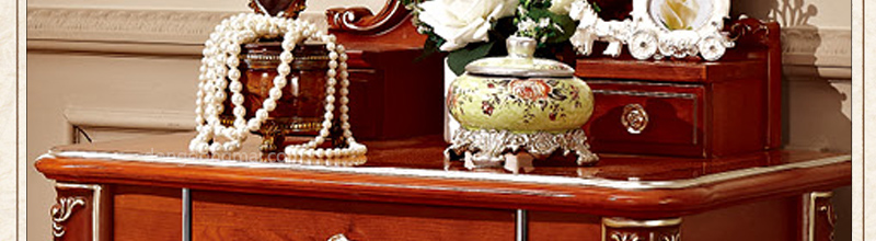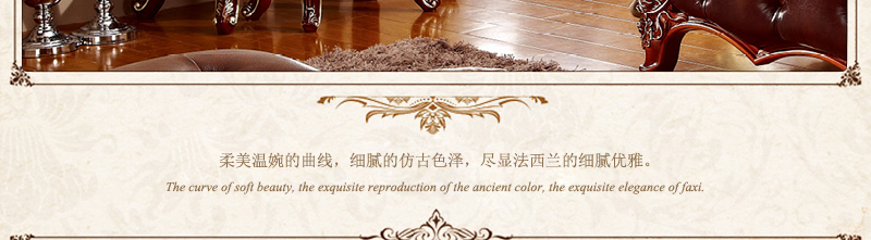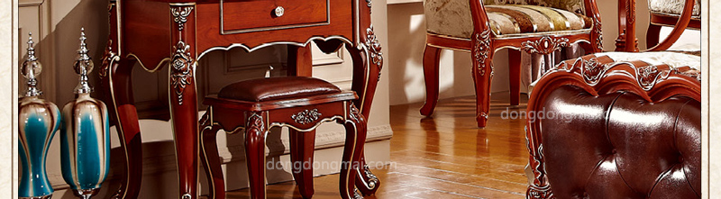 古典法式家具带有浓郁的贵族气息,这类风格的家具,主要采用花样繁多的装饰,作大面积的手工雕刻、金箔贴面、描金涂漆处理,坐卧类家具大量应用面料包覆,华丽的布面与精致的雕刻互相配合。新古典的线条更为明快,主要以嵌花贴皮呈现质感。