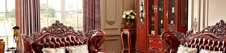 古典法式家具带有浓郁的贵族气息,这类风格的家具,主要采用花样繁多的装饰,作大面积的手工雕刻、金箔贴面、描金涂漆处理,坐卧类家具大量应用面料包覆,华丽的布面与精致的雕刻互相配合。新古典的线条更为明快,主要以嵌花贴皮呈现质感。