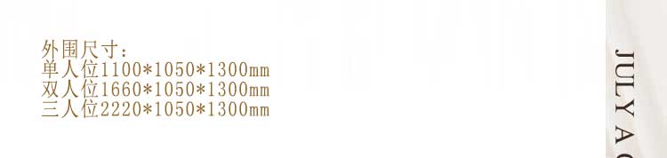 外围尺寸:单人位:1100*1050*1300mm; 双人位:1660*1050*1300mm; 三人位:2220*1050*1300mm。