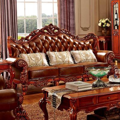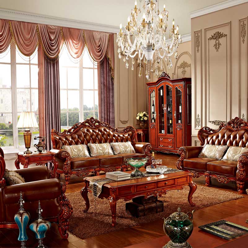 罗曼印象古典雕花实木真皮沙发法式风格皮艺1+2+3沙发组合856