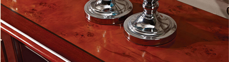古典法式家具带有浓郁的贵族气息,这类风格的家具,主要采用花样繁多的装饰,作大面积的手工雕刻、金箔贴面、描金涂漆处理,坐卧类家具大量应用面料包覆,华丽的布面与精致的雕刻互相配合。新古典的线条更为明快,主要以嵌花贴皮呈现质感。
