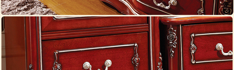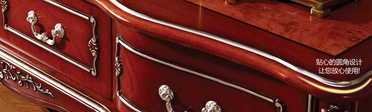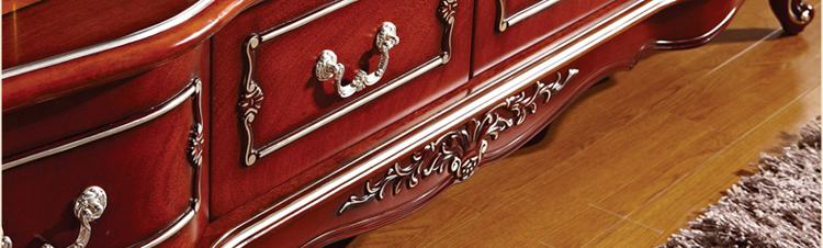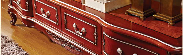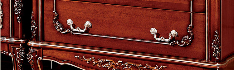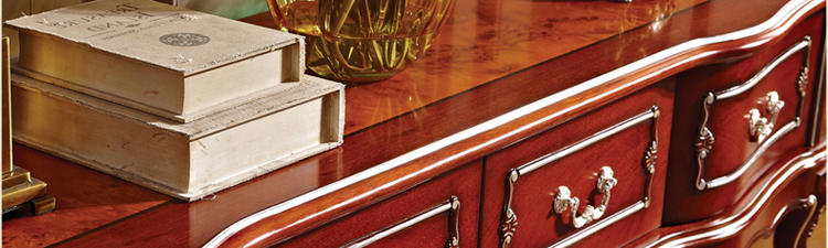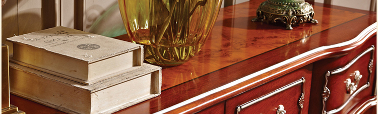 古典法式家具带有浓郁的贵族气息,这类风格的家具,主要采用花样繁多的装饰,作大面积的手工雕刻、金箔贴面、描金涂漆处理,坐卧类家具大量应用面料包覆,华丽的布面与精致的雕刻互相配合。新古典的线条更为明快,主要以嵌花贴皮呈现质感。