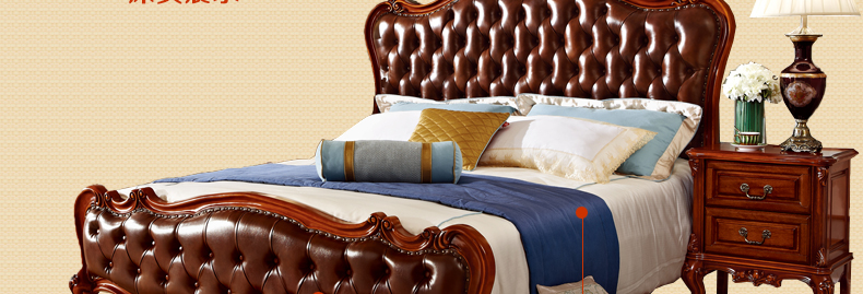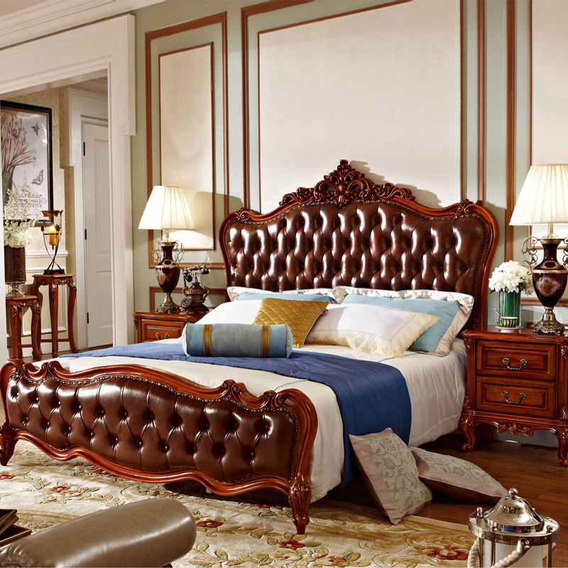 罗曼印象 美式风格 古典大气 精致雕花 皮艺大床 型号:528