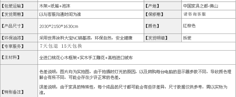 外围尺寸:床:1.8*2.0; 床头柜:620*420*690mm;