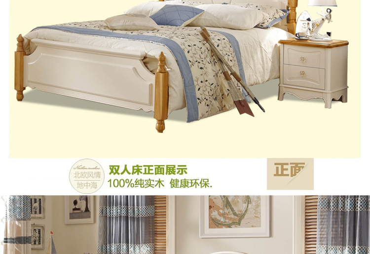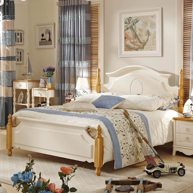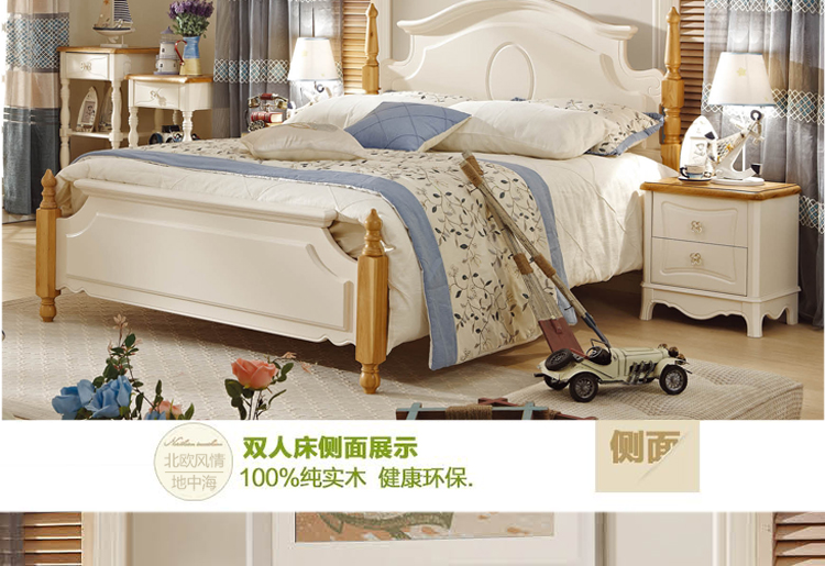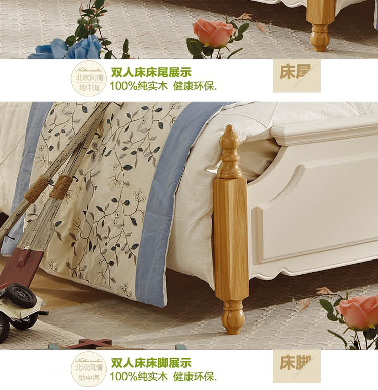 罗曼印象地中海床卧室简约白色舒适实木双人储物床951