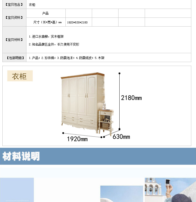 罗曼印象地中海实木衣柜五门衣柜田园衣橱环保卧室衣柜家具902
