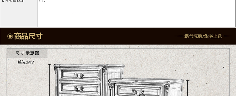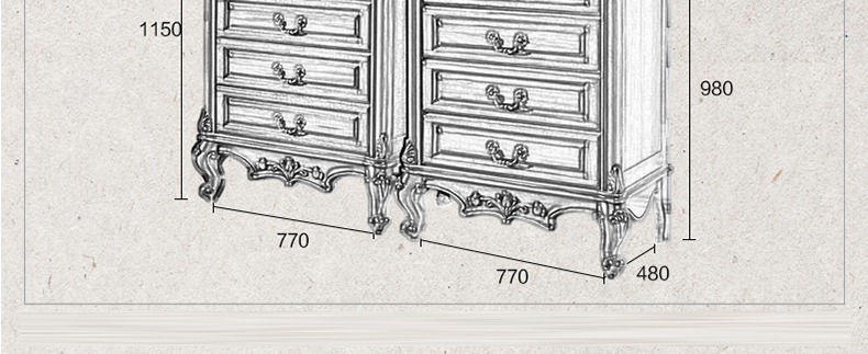 外围尺寸:四斗柜:770*480*980mm; 五斗柜:770*480*1150mm