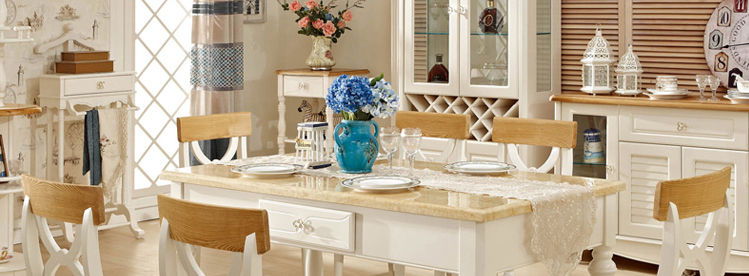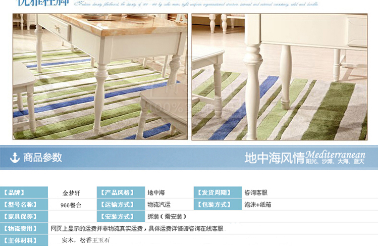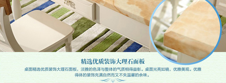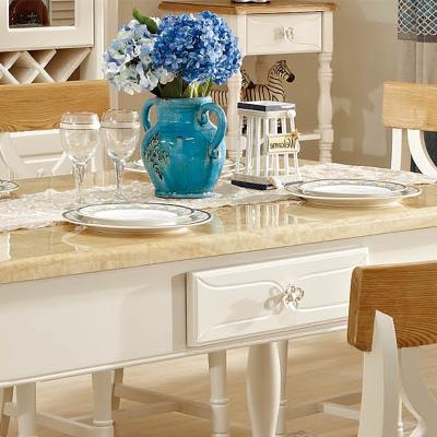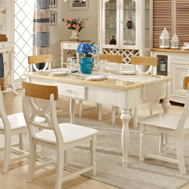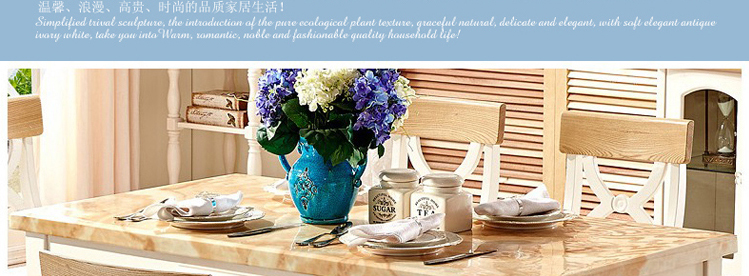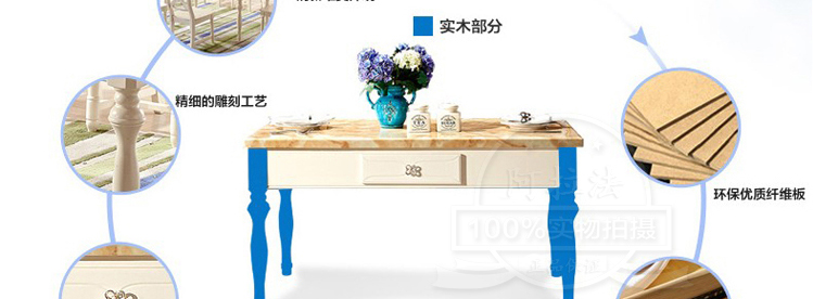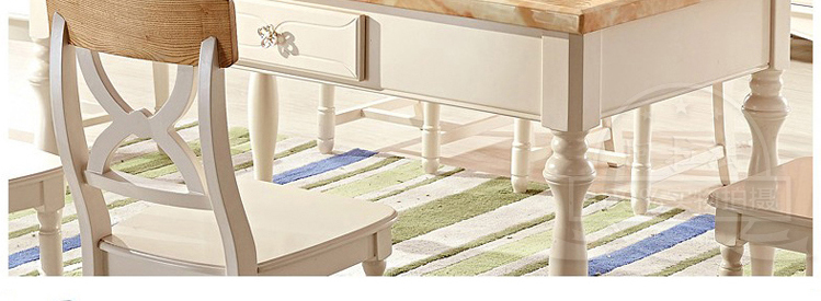 罗曼印象餐桌实木6人座天然大理石餐桌地中海风格餐桌长方形餐桌966