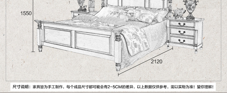 外围尺寸:床:1.8*2.0; 床头柜:650*460*650mm