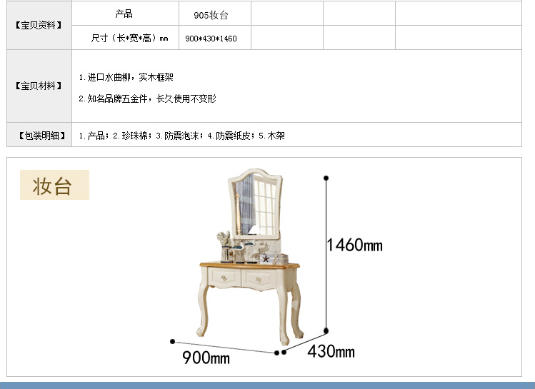 罗曼印象地中海田园梳妆台乡村实木化妆桌妆镜组合905
