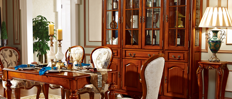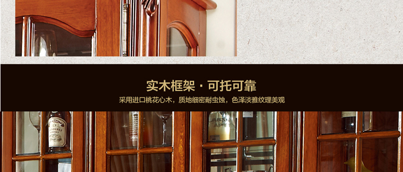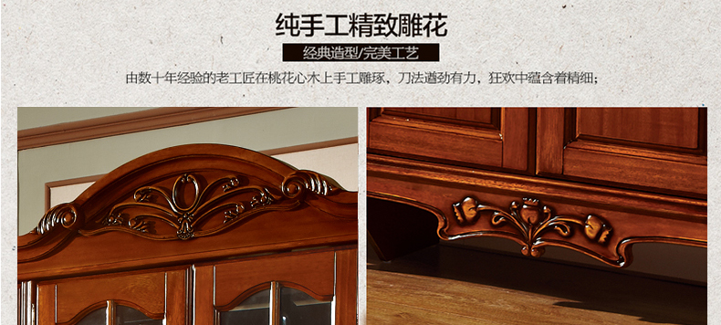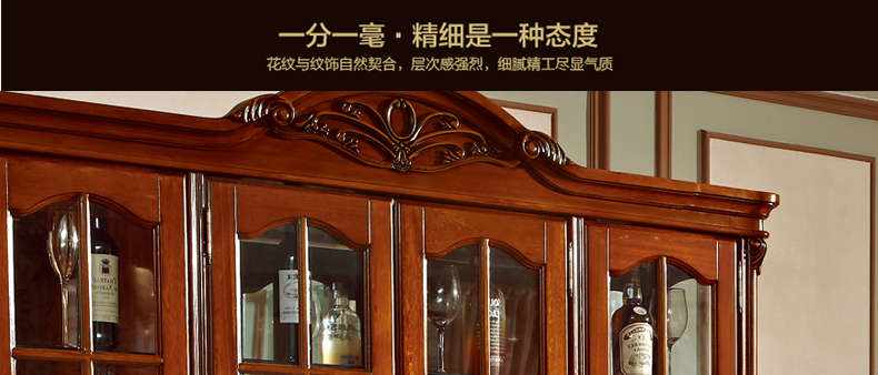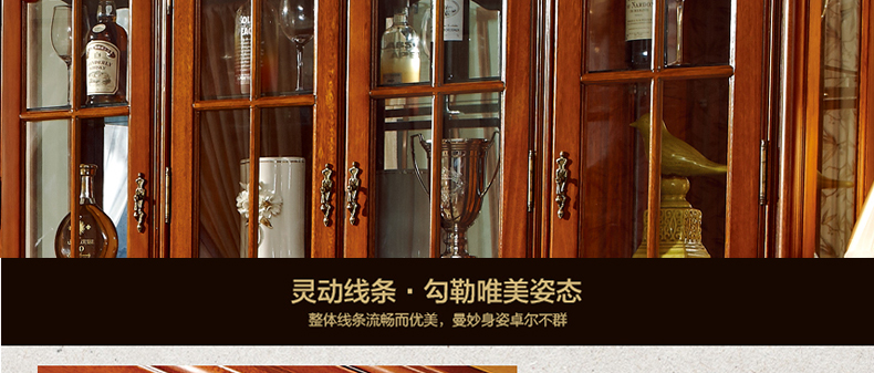 罗曼印象美式实木四门大酒柜 客厅装饰展示柜雕花储物玄关柜528