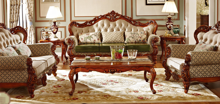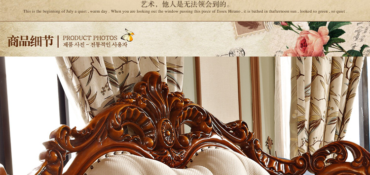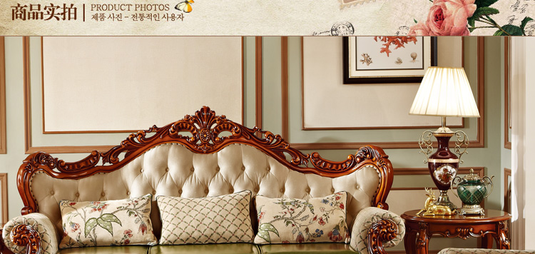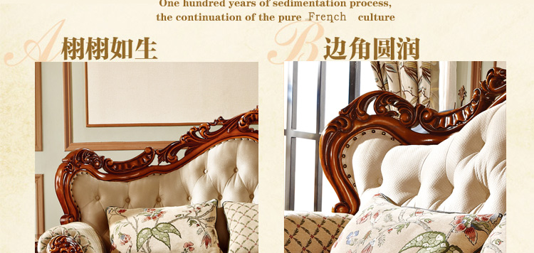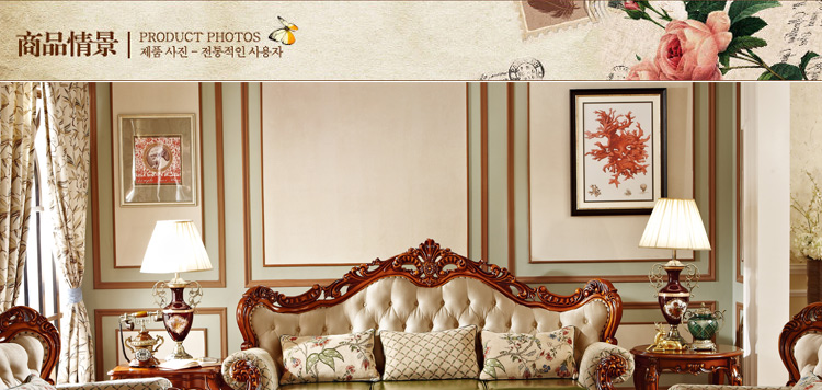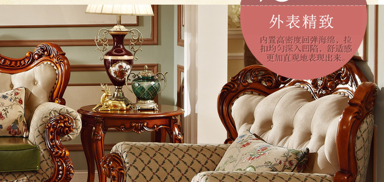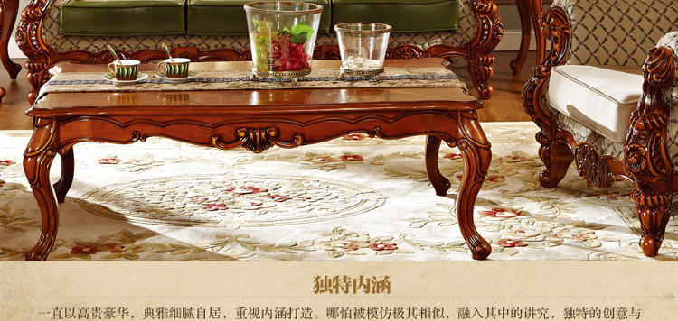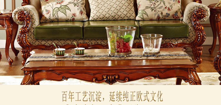 罗曼印象 美式全实木雕花沙发 高档舒适真皮客厅沙发组合548