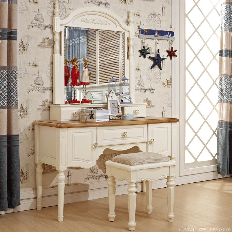 罗曼印象地中海梳妆台卧室白色高档简约化妆桌镜组合902