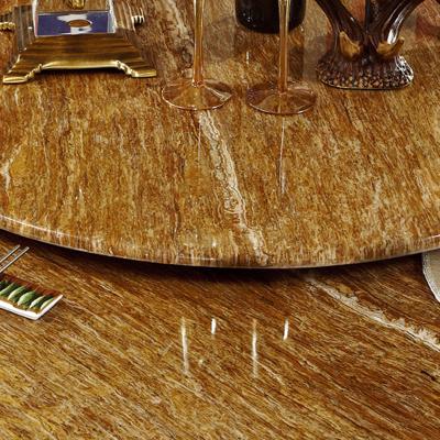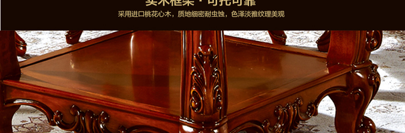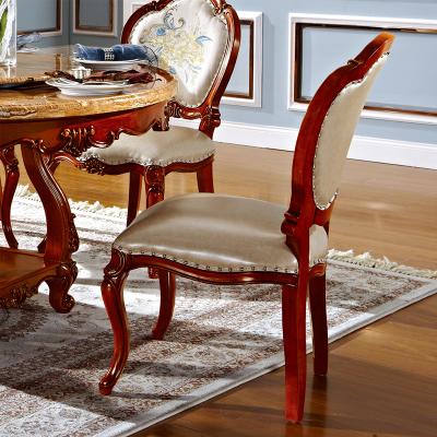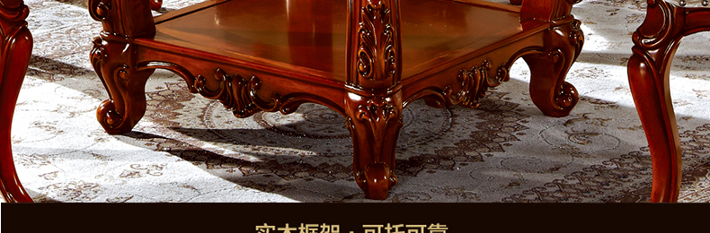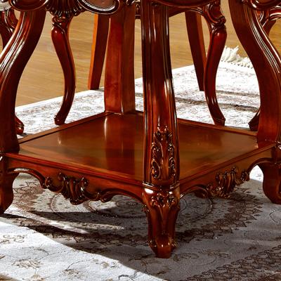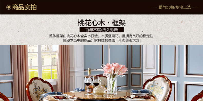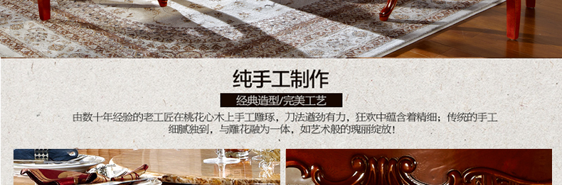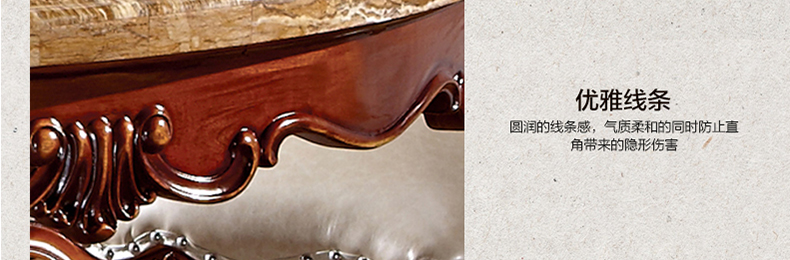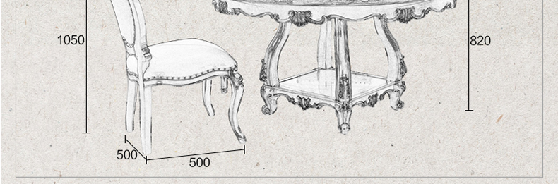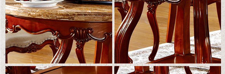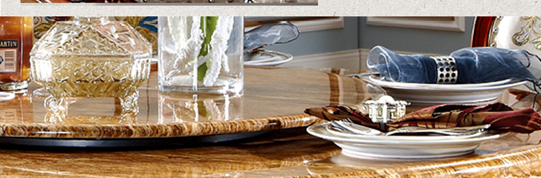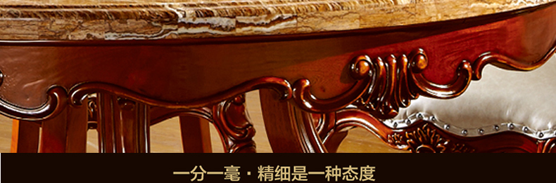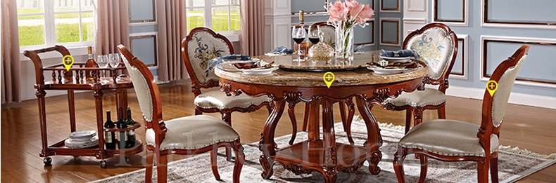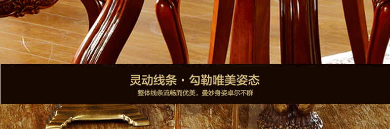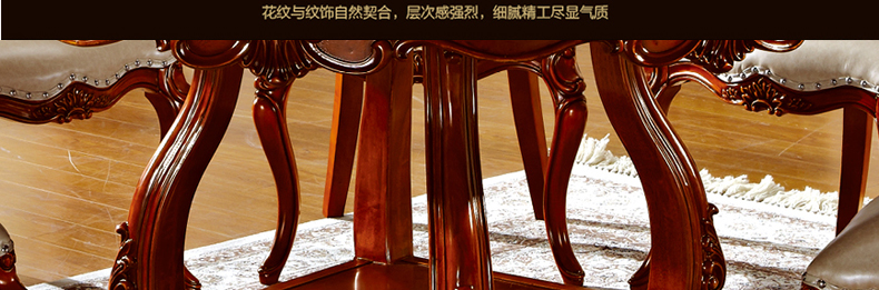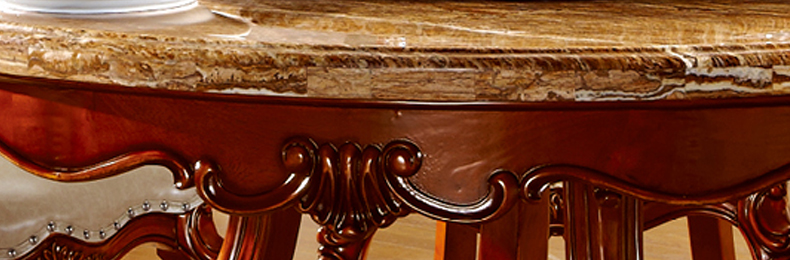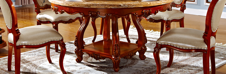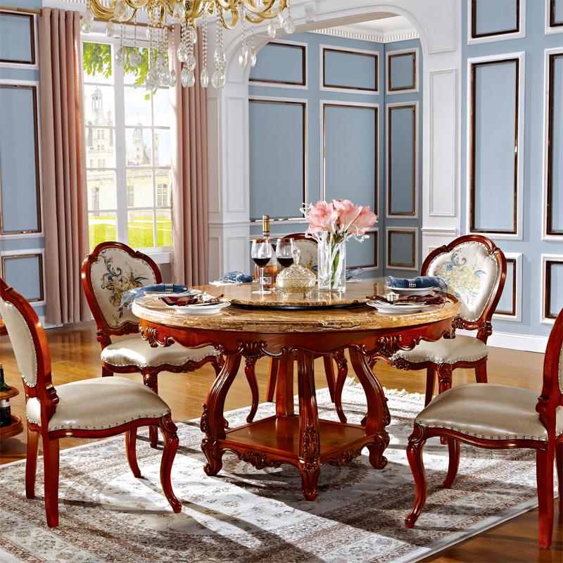 罗曼印象美式大理石餐桌 实木圆餐台 圆形餐桌椅组合 美式雕花大圆桌饭桌558