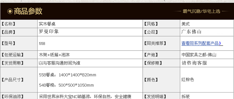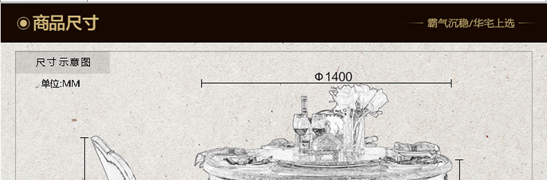外围尺寸:餐台:1400*1400*820mm; 餐椅:500*500*1050mm;