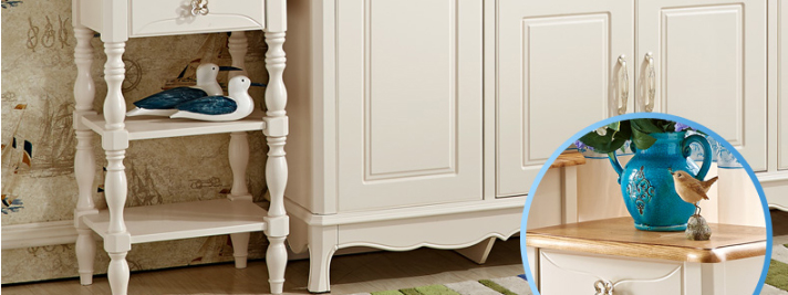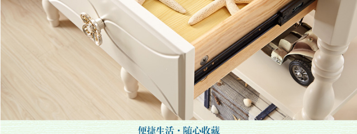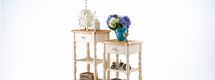 罗曼印象地中海木质花架子多层室内置物架白色花几实木花架花盆架带抽屉931