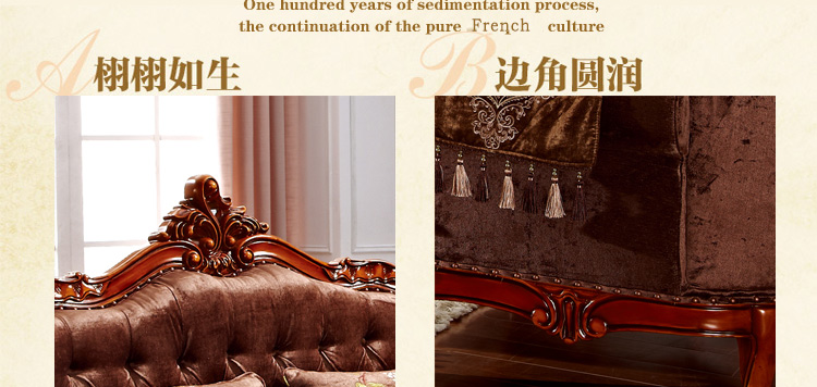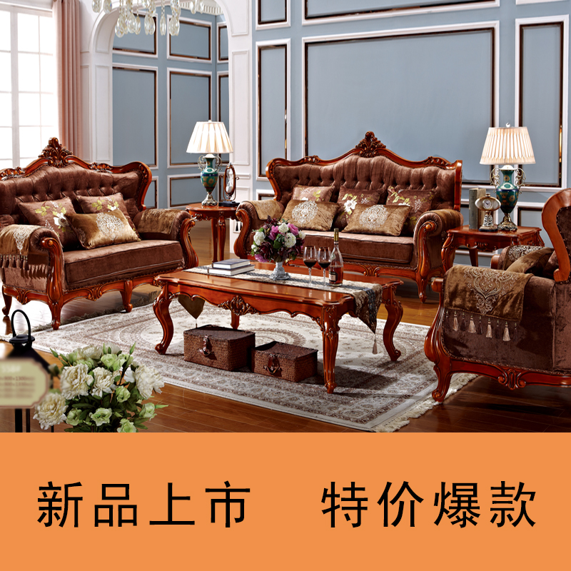 罗曼印象美式乡村布艺三人沙发客厅复古小户型实木123组合558
