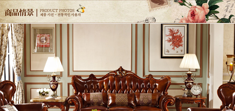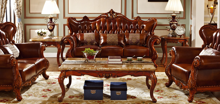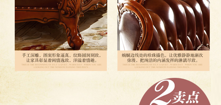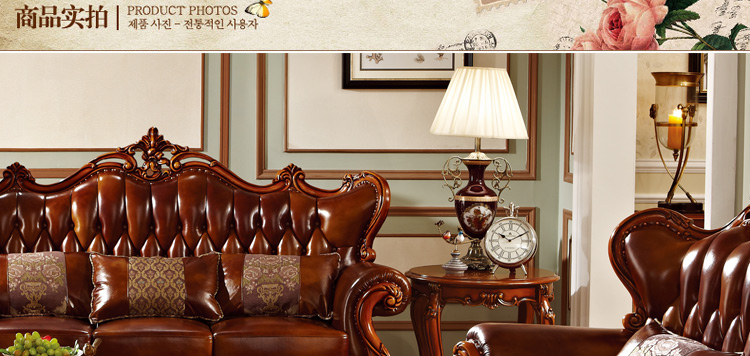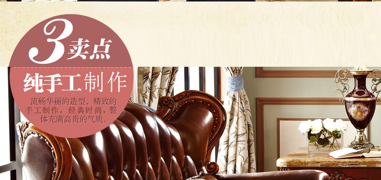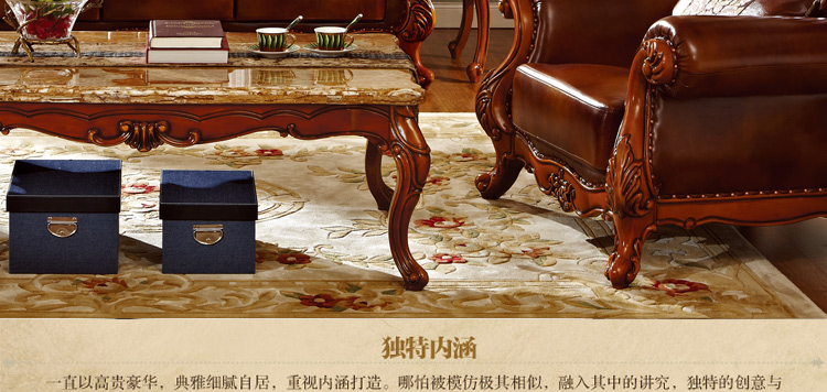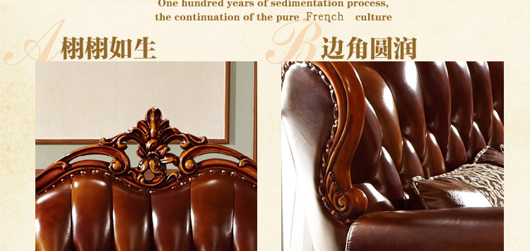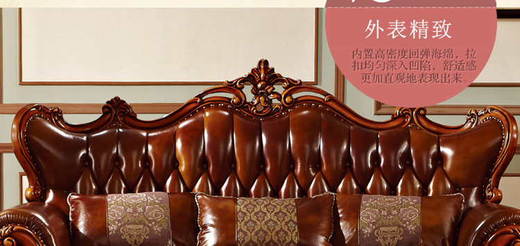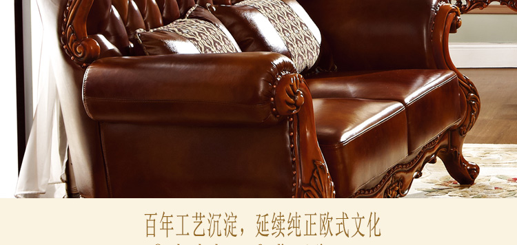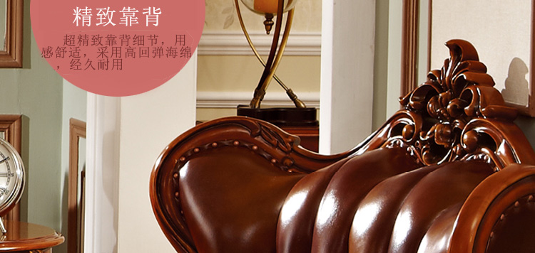 罗曼印象全实木欧式沙发组合古典雕花头层牛皮真皮沙发588