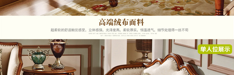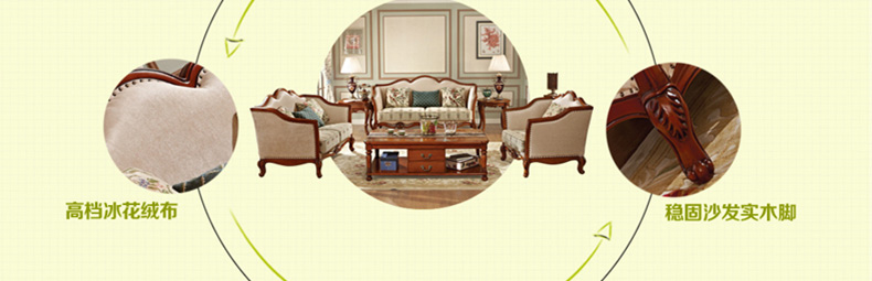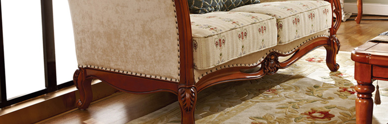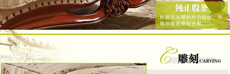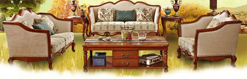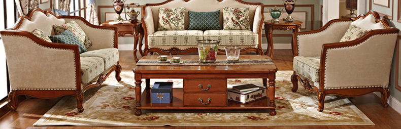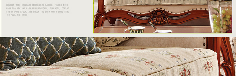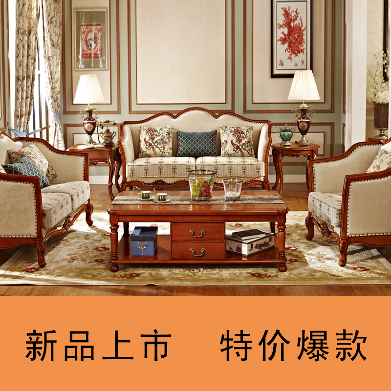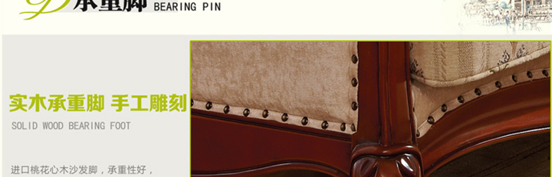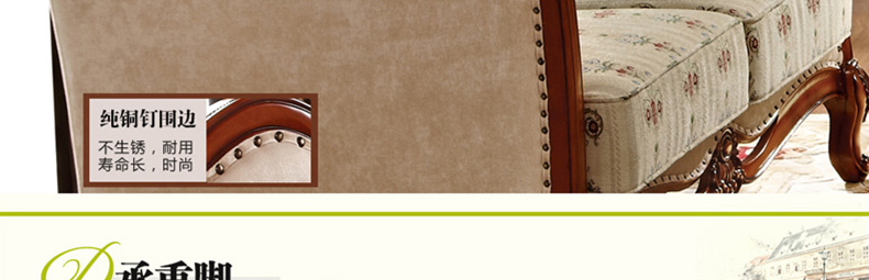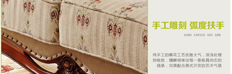 罗曼印象全实木布艺美式艺术沙发 大小户型雕花皮布沙发组合598