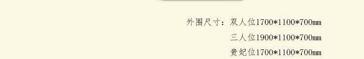 外围尺寸:贵妃位1700*1100*700; 三人位 1900*1100*700; 双人位 1700*1100*700。