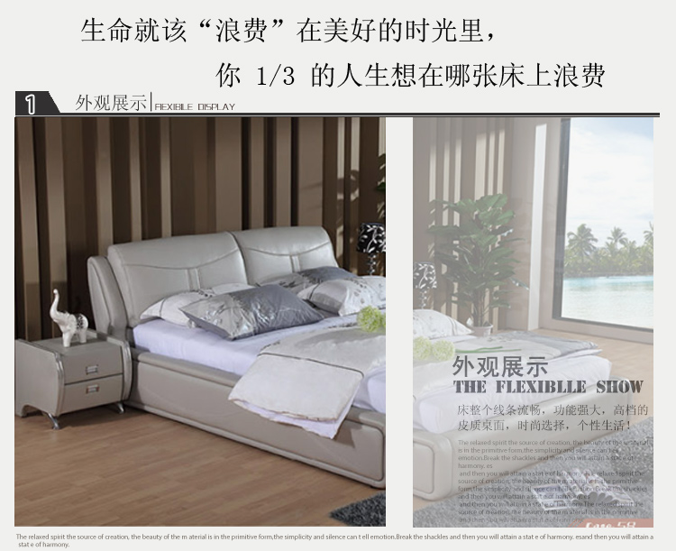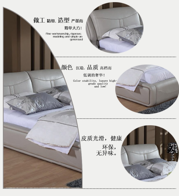 圣德利奥现代简约皮艺大床 舒适大方 色彩鲜明