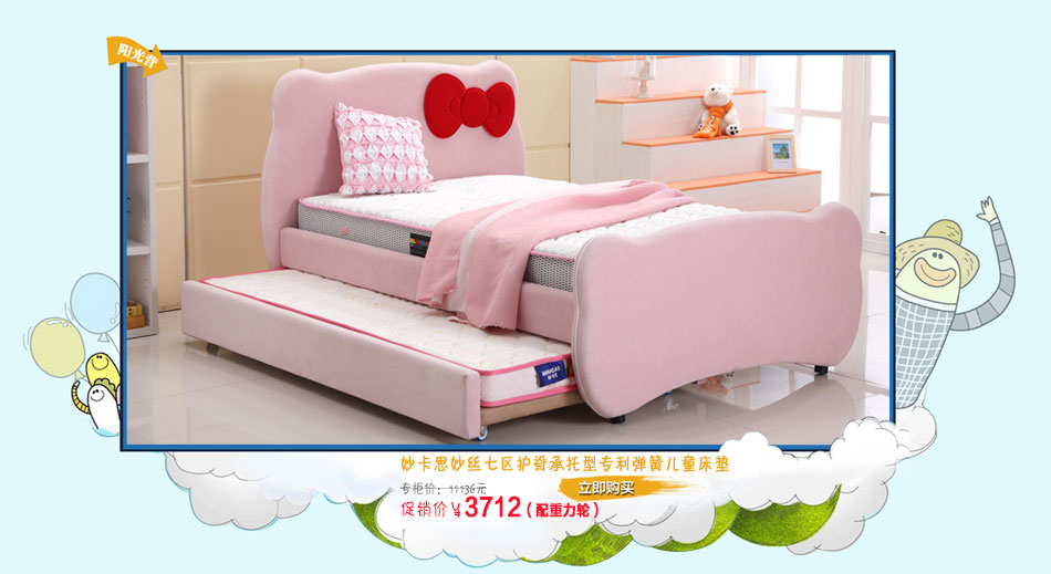 立即购买妙卡思2015青少年儿童按摩席梦思 1.5竹炭记忆棉边缘加固弹簧床垫M-002