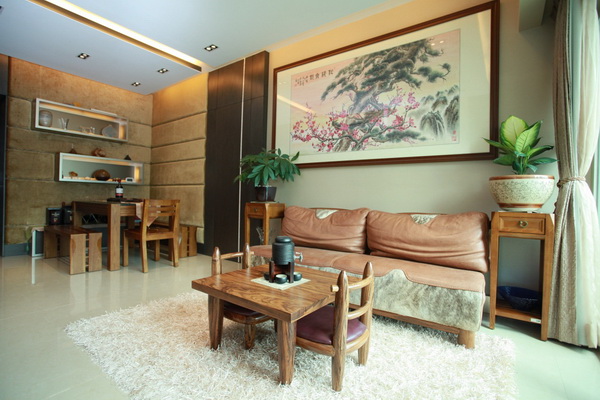 国画山水的选择宜横不宜竖,这样悬挂可以和屋子是沙发地面等形成两条平行线,起到相辅相成的功效。