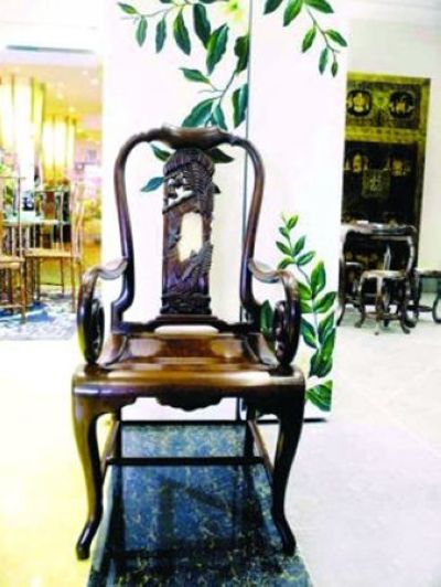 记者在马会家居的御融生活馆看到的一款粤派座椅,扶手的螺旋造型就是很典型的舶来风貌。椅背板雕刻有芭蕉叶、花鸟,中间镶嵌着一块素白的玉石,优雅空灵,装饰性很强。椅子的线条柔美顺畅,灵动活泼,丝毫没有所谓古典家具的刻板面貌。设计师特地将椅面、扶手、靠背的曲线打造成符合现代人曲线的线条。