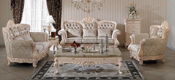 3、欧式沙发 欧式沙发分古典和现代两种,欧式古典沙发气质典雅,曲线优美,花边装饰繁杂、华丽;而欧式现代沙发线条简洁,色彩雅致,同样讲究工艺,适合各种风格的现代家居生活。